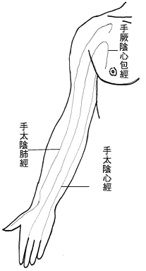 穴道:有十四經脈中的「足陽明胃經」、「足太陰脾經」、「足少陰腎經」、「手厥陰心包絡經」以及任脈必經之。